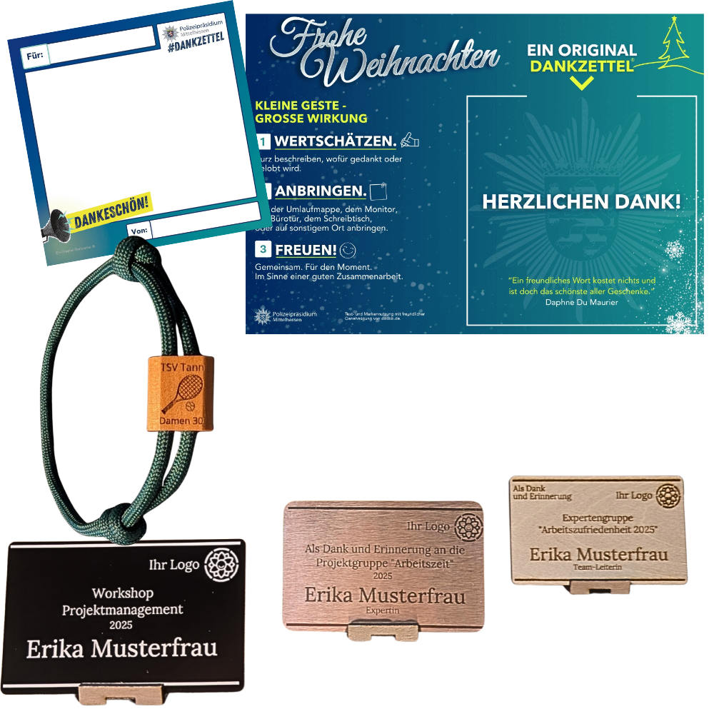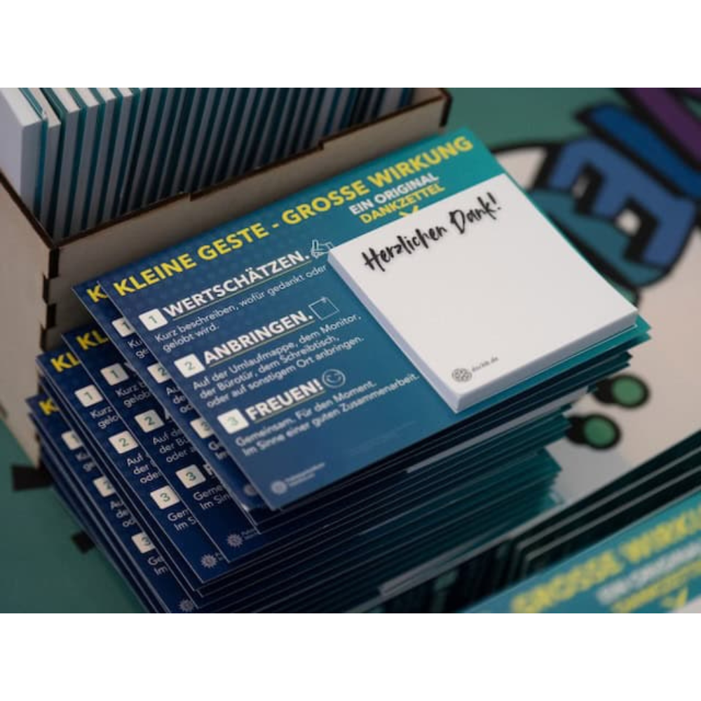 Ob als Dankeschön für Mitarbeitende, als nachhaltiges Kundengeschenk oder als Symbol gelebter Unternehmenskultur – alle Produkte der Dankfabrik können individuell mit eurem Logo gestaltet werden. So entsteht etwas Besonderes: ein greifbares Zeichen für Wertschätzung, das deine Marke stärkt und verbindet. Alle bei uns bestellten Papierprodukte dürfen auch unseren Markennamen Dankzettel® tragen. Auf Wunsch begleiten wir euch von der Gestaltung bis zur fertigen Umsetzung.